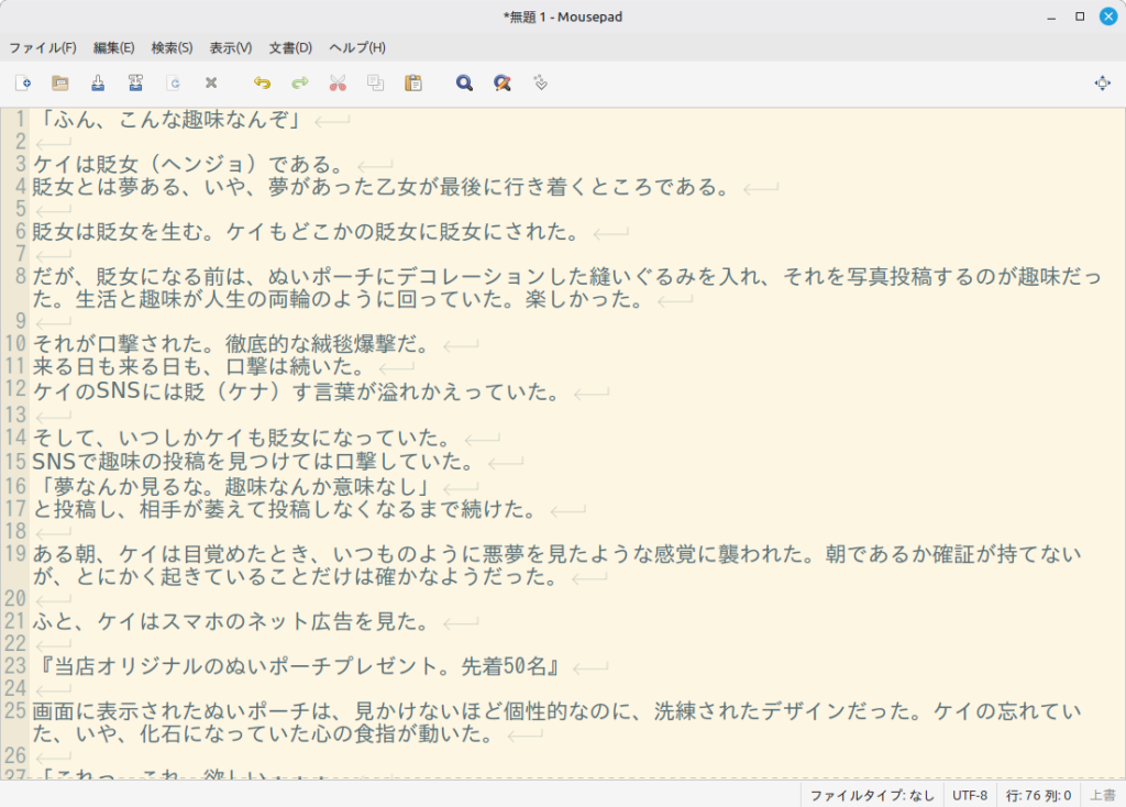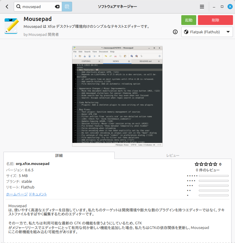 「Mousepad」は「Xfce」向けですが、インストールして使用可能です。
