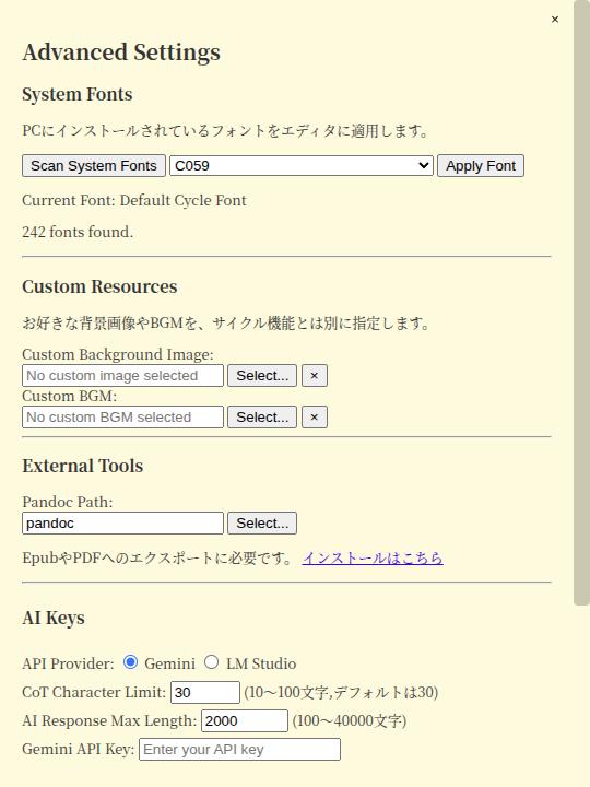 • AIチャット機能とアイデアプロセッサを搭載した、創作支援用テキストエディタ
